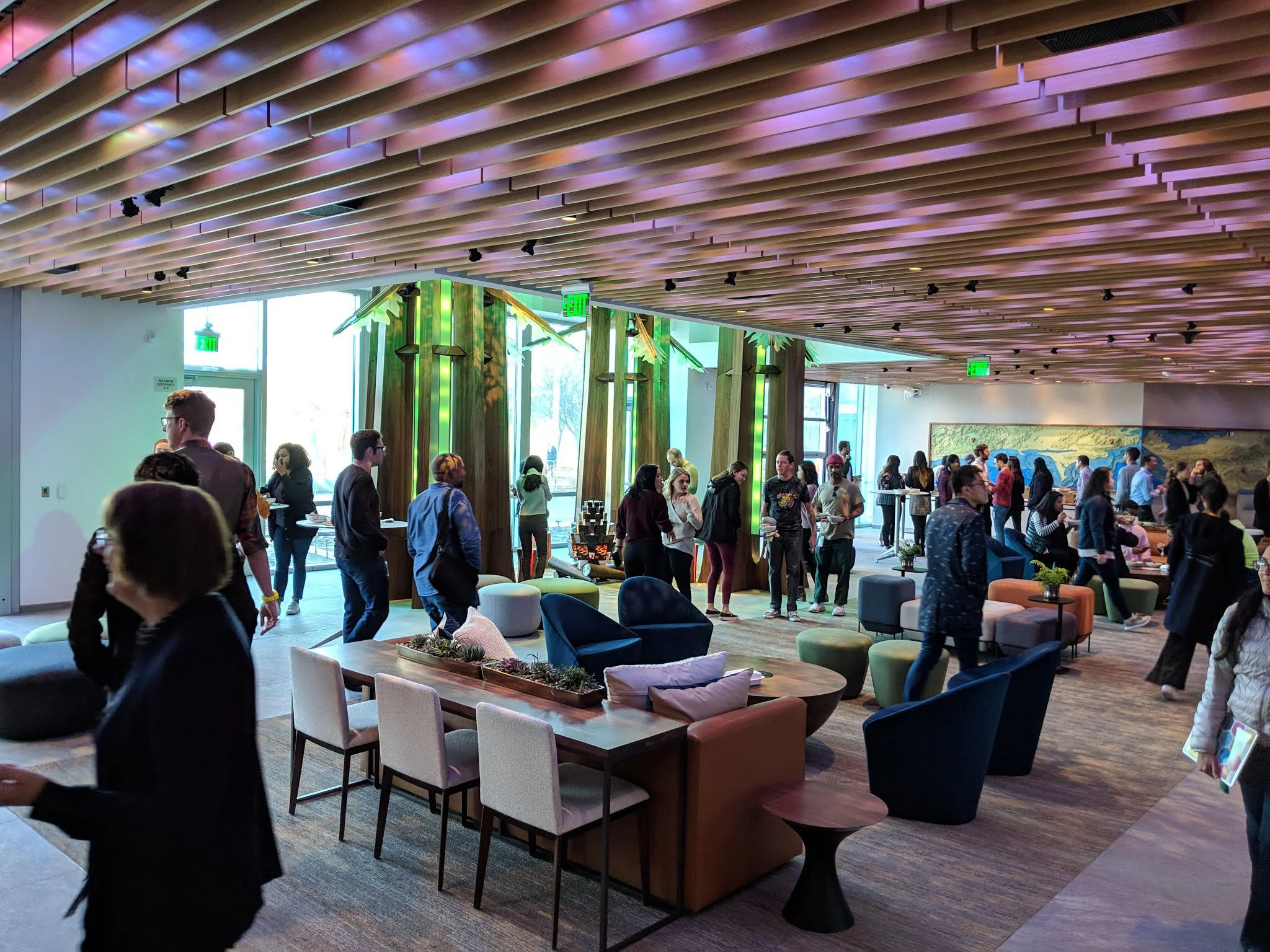 As you leave the lobby and head towards the main gathering area of the space, you make your way to the Redwood Trail.